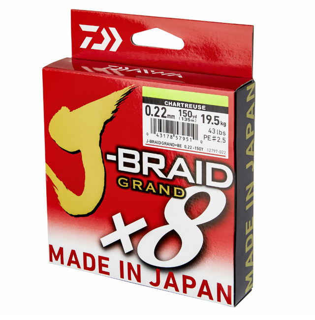 Die J-Braid bietet für jede Angelmethode den richtigen Durchmesser – egal, ob im Meer, Fluss oder See - kompromisslos stark und zuverlässig. Die J-Braid ist dabei sehr weich und glatt und gleitet geräuschlos durch die Ringe und Sie können selbst mit leichten Ködern optimale Wurfweiten erzielen. Ideal für Spinn-und Baitcastrollen!