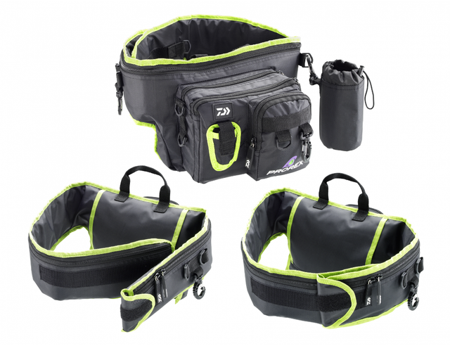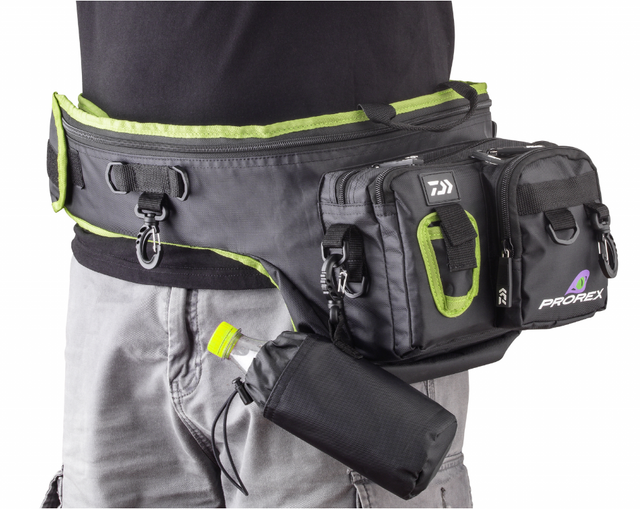 Die beiden Aufsetztaschen mit 20x16cm Größe fassen Köderboxen bis zu einer Größe von ca. 19.5x15.5cm. Die zusätzliche, vordere Aufsetztasche mit 12x16cm Größe eignet sich zur Aufnahme von Dokumenten, Schlüssel, etc. Zusätzlich befindet sich ein Zangenhalter an der Frontseite, sowie ein Flaschen- bzw. Dosenhalter, der mittels Karabiner eingehängt wird. Zudem beinhaltet die Tasche 2 große Karabiner an der Seite, an denen weiteres Zubehör befestigt werden kann. Die Hüfttasche kann ganz einfach und schnell mittels Klettverschluss auf den Körper angepasst werden und bietet einen hervorragenden Tragekomfort.