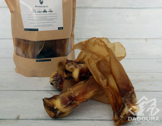 Zusammensetzung: 100% Schweizer Rinderohren, geräuchert