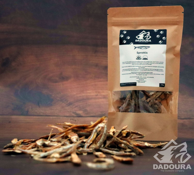 Sprotten gehören zur Gattung der Heringe. Es sind kleine im Schwarm lebende Fische. Dank ihres intensiven Geschmacks sind sie bei Hunden wie Katzen sehr beliebt.